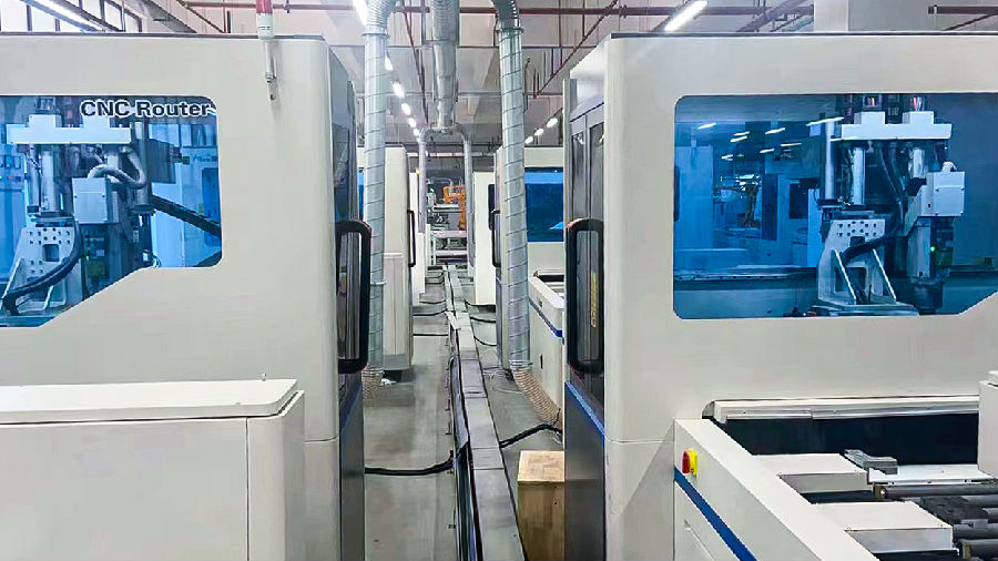 品脈數控實(shí)木家具生產(chǎn)流水線(xiàn)客戶(hù)工廠(chǎng)實(shí)拍,完成實(shí)木家具多種工件的銑型、開(kāi)槽、鉆孔等工藝!