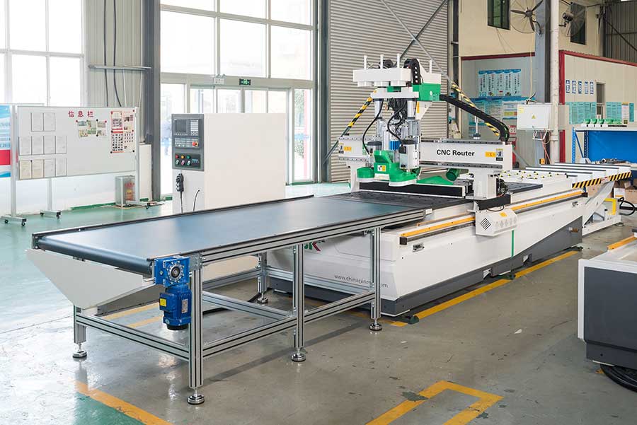 4.對于規?;募揖邚S(chǎng),產(chǎn)量要求更高,前端開(kāi)料機配自動(dòng)換刀的加工中心,后端配打孔效率更高的數控六面鉆則更為適合。