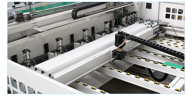 ◆進(jìn)料區采用氣動(dòng)浮珠臺面,防止板材表面劃傷,減輕上料勞動(dòng)強度;
