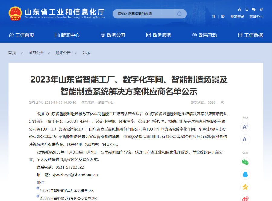 2023年11月3日,山東省工業(yè)和信息化廳公布了2023年山東省智能工廠(chǎng)、數字化車(chē)間、智能制造場(chǎng)景及智能制造系統解決方案供應商名單,中品智能機械有限公司工業(yè)4.0數控裝備智能工廠(chǎng)入選2023年山東省智能工廠(chǎng)名單。