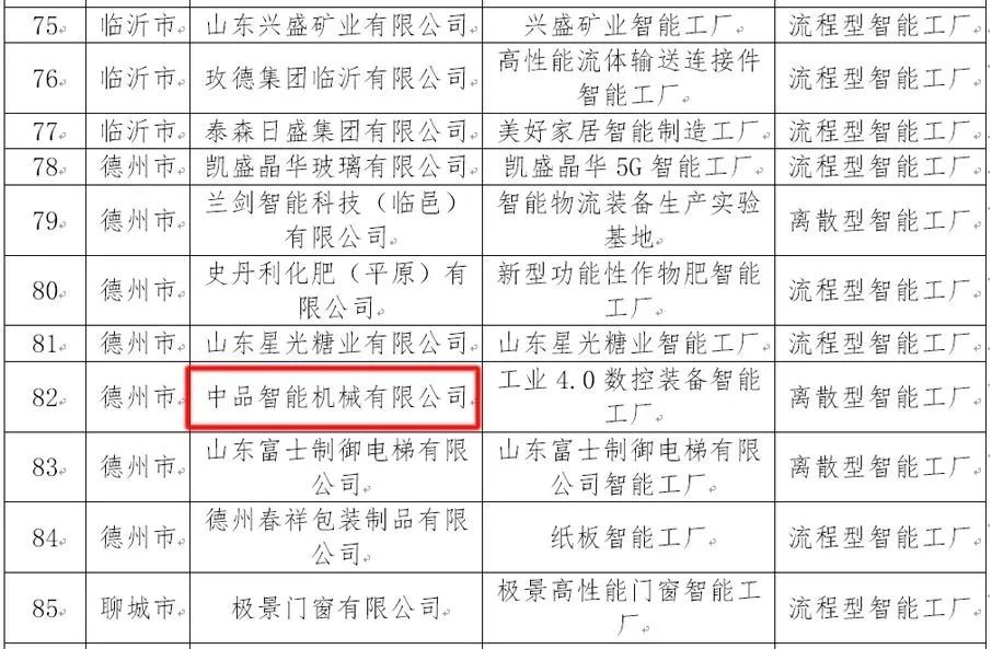 喜報!熱烈慶祝中品智能機械有限公司入選2023年山東省智能工廠(chǎng)名單