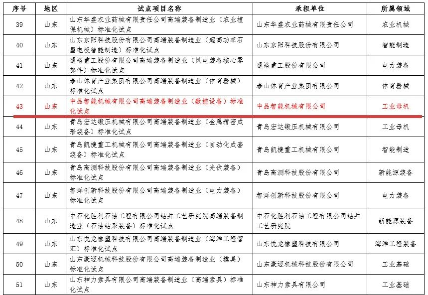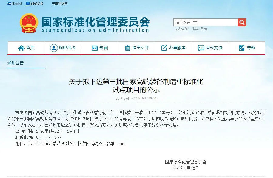2024年1月12日,國家標準化管理委員會(huì )公布了第三批國家高端裝備制造業(yè)標準化試點(diǎn)項目,中品智能機械有限公司入選。